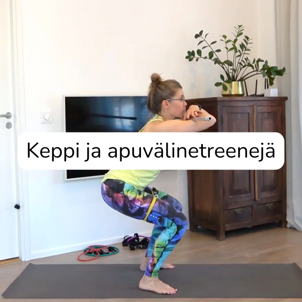 Jokaisesta harjoituksen liikkeestä on erillinen video-ohjeistus, jossa käydään läpi eri versioita liikkeistä, jotta löydät itsellesi sopivan variaation.