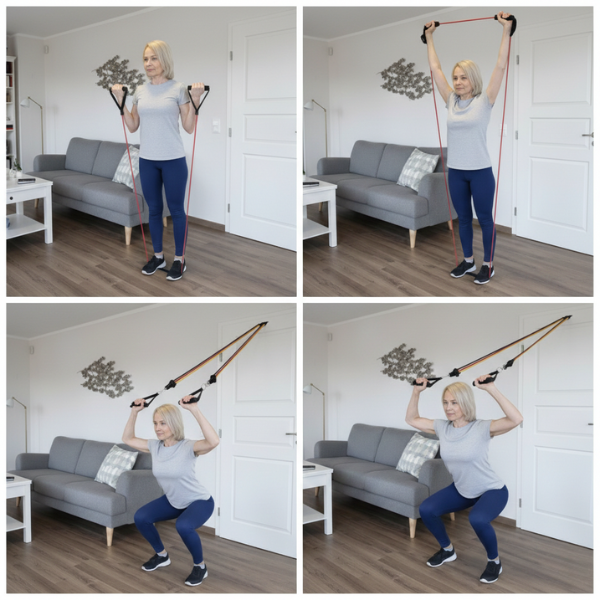 Sisältää monivastusnauhat, joiden avulla harjoituksia voidaan mukauttaa eri tasoille ja kehittää voimaa turvallisesti kotona.