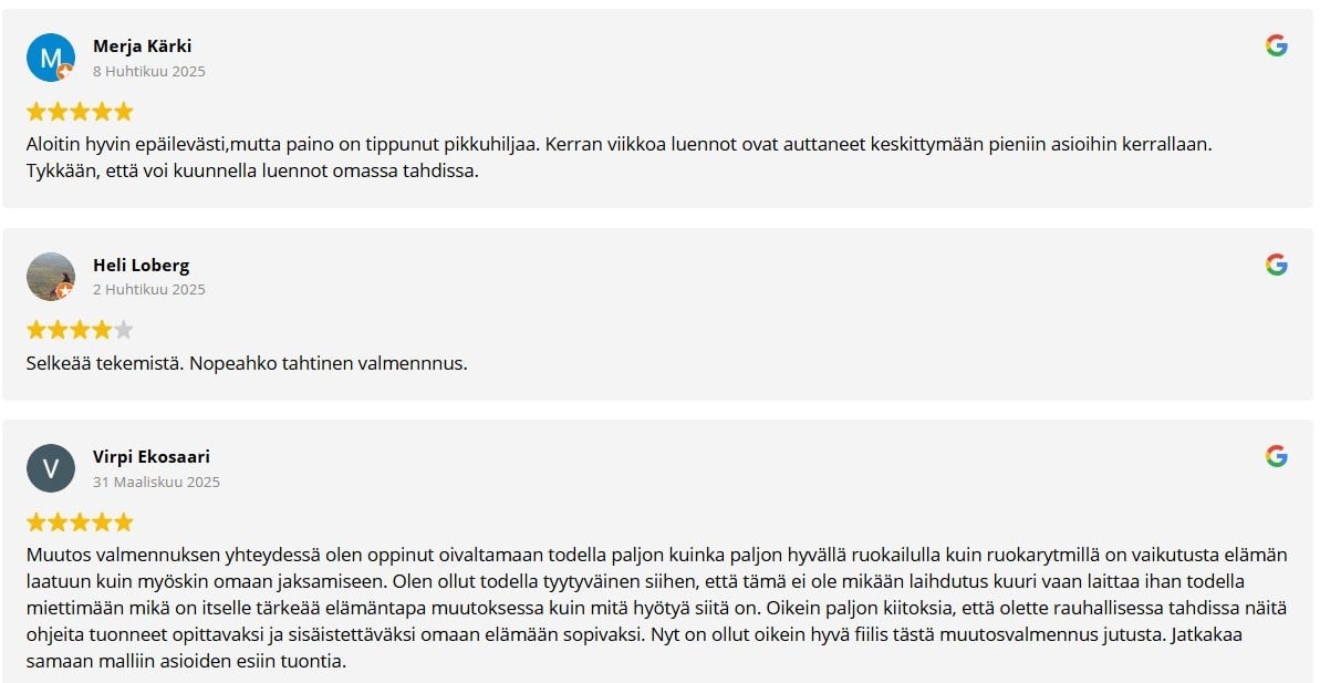 Tämä sivu tarjosi sinulle arvokkaan pintaraapaisun aiheeseen, mutta todellinen syvällinen ymmärrys ja pysyvä muutos alkavat vasta, kun pääset käsiksi käytännön työkaluihin ja tukeen. Juuri tätä varten olemme luoneet Muutos-valmennuksen!
